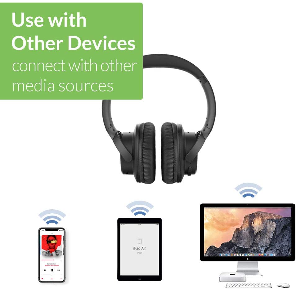 - [Wireless connect with other devices] Headphones can also be paired and used with other 'Bluetooth transmitter devices - including your phone, tablet, PC or TV! The transmitter can be used with any Bluetooth receiver devices including other headphones or speakers in your home.